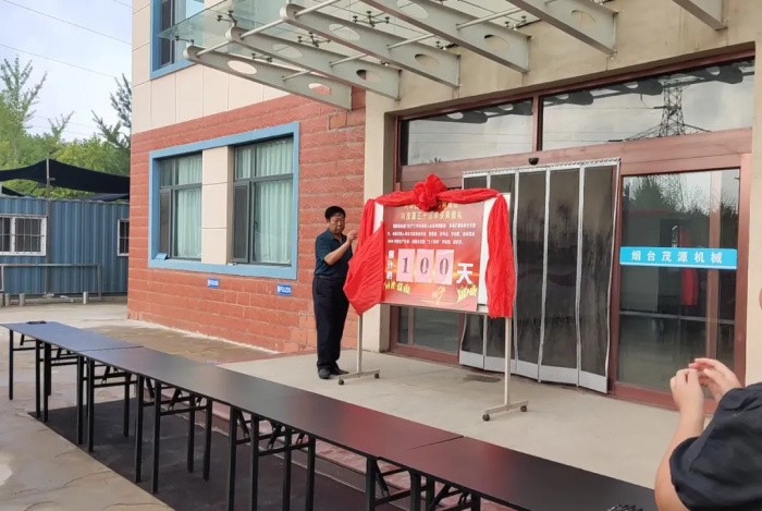 隨后,大會(huì)第四項(xiàng),董事長(zhǎng)姜篤華先生上臺(tái)講話,為全體茂源人帶來了激勵(lì)與期望。講話完畢,姜董進(jìn)行了 “大干 100 天,為茂源公司成立三十周年獻(xiàn)禮” 倒計(jì)時(shí)揭牌儀式,將大會(huì)推向高潮。