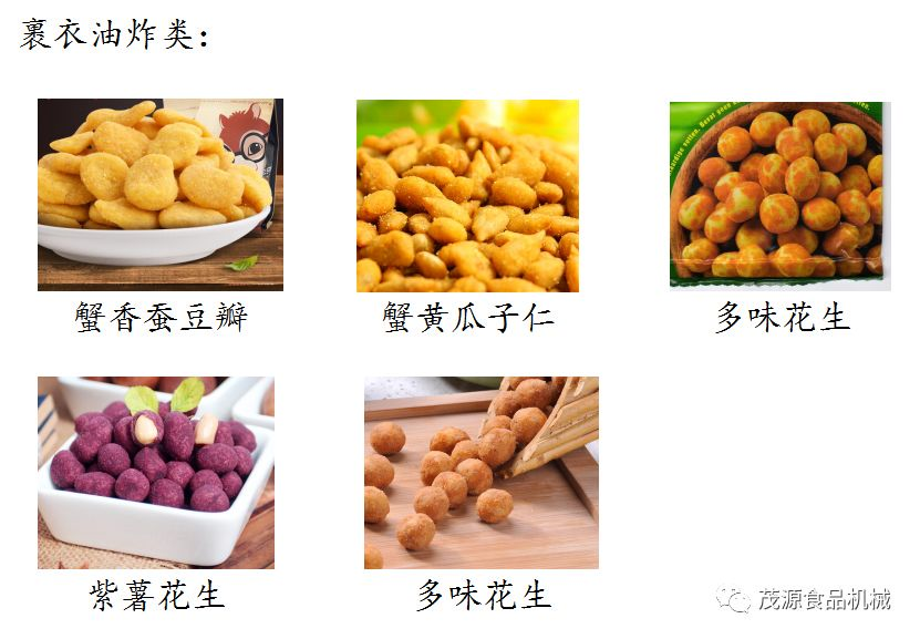裹衣油炸類:蟹香蠶豆瓣、蟹黃瓜子仁、多味(五香、紫薯、麻辣)花生