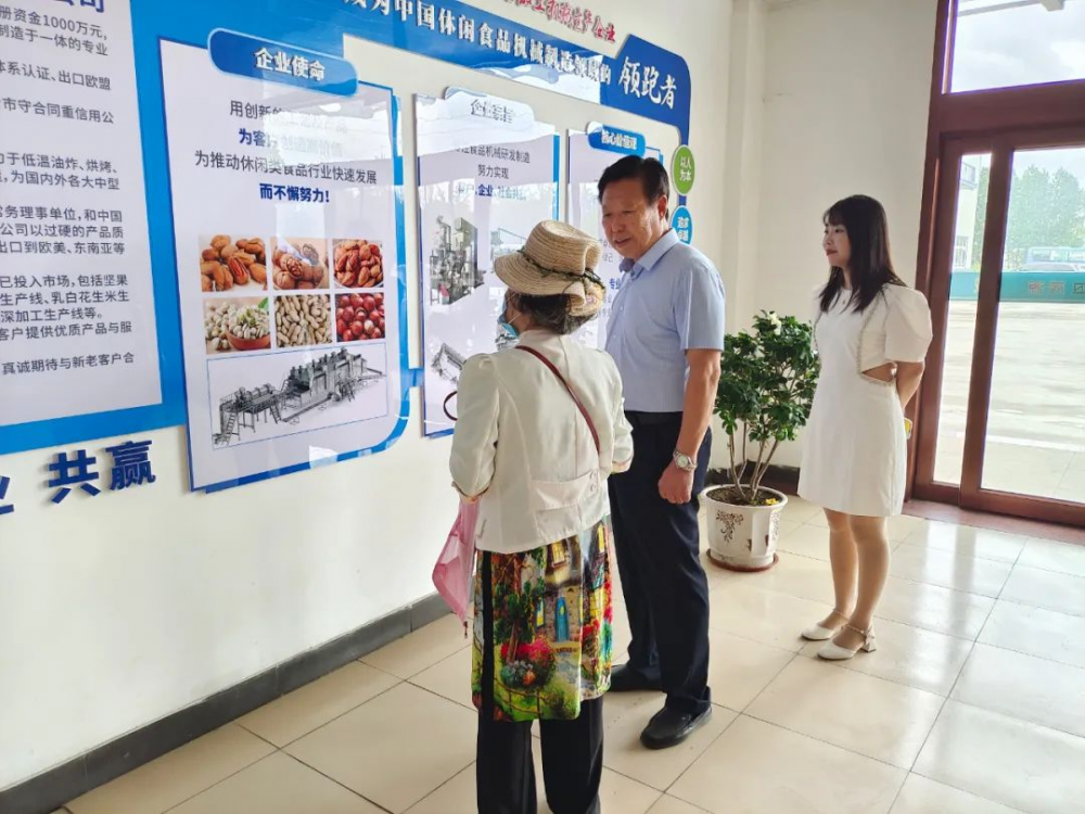 近日,中國食品工業(yè)協(xié)會堅(jiān)果果干專業(yè)委員會常務(wù)副會長翁洋洋率領(lǐng)協(xié)會工作人員一行,蒞臨我司進(jìn)行考察調(diào)研,并就相關(guān)設(shè)備技術(shù)進(jìn)行指導(dǎo)工作。
