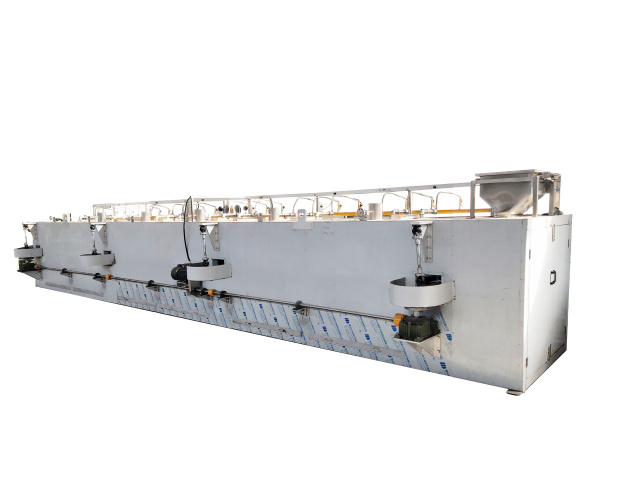 全自動(dòng)平面回轉(zhuǎn)烤爐主要用于堅(jiān)果炒貨及籽類產(chǎn)品裹衣裹粉后的烘烤加工。采用直燃式加熱方式,熱量直接作用于食品上,烘烤香味更濃郁,并通過(guò)設(shè)備的搖擺避免食品粘連變形。具有烘烤口味色澤優(yōu)良, 沒(méi)有污染等特點(diǎn)。